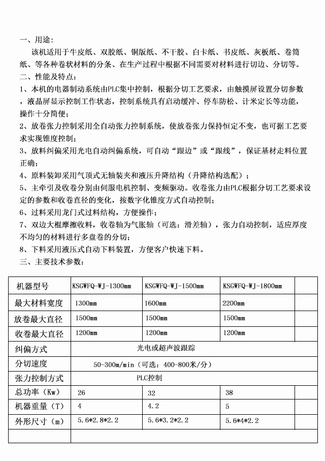 KSGWFQ-WJ 龍門式卷筒紙分切機